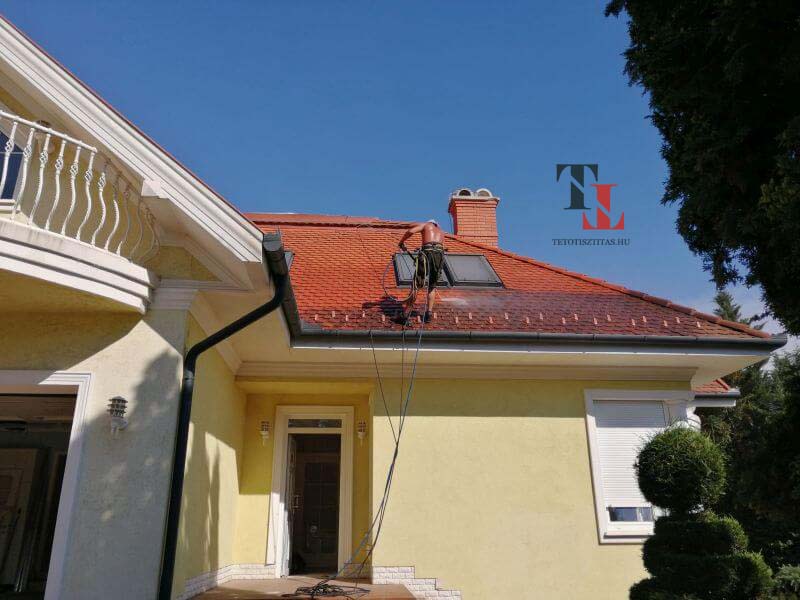 Dunakeszin egyik legszebb részén a Duna parton felkértek minket, hogy miközben a házon belső felújításokat végeznek tisztítsuk le a tetőt, mert ha már nekiállta legyen az épület kívül és belül is tiszta. Több cserép is törött volt és el voltak mozdulva a helyükről, amelyek később beázást is okozhattak volna, ezeket kicseréltük és helyreigazítottuk. Fontos számunkra, hogy a tetőt megfelelő állapotban adjuk át a tetőmosás után. A tetőtisztítás során feltártunk olyan hibákat, melyről a megrendelőnk nem tudott és ezt követően hívott tetőfedő szakembert, hogy megjavítsa a bádogok körüli problémát. Cégünk részéről a tetőmosás a tisztaságról és megfelelő állapot eléréséről is szól. Az eredménnyel mindenki elégedett volt és szívesen ajánlották tovább cégünket.